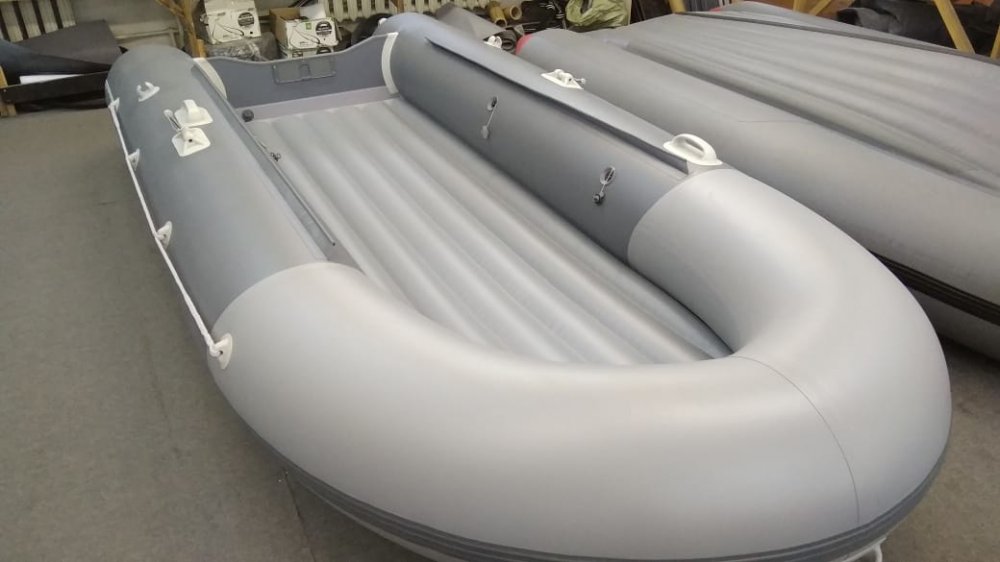 Не нужно никаких выкроек . Берёте пож рукав , делаете напуск по длине на носах см по 30 и протыкая шилом дырки в рукаве садите рукав вместо старой резины . Садить на винты М3 , через 10 дырок . центр не крепить , потому как потом его с поперечной резиной сшивать . борт гнать от середины к носам , а не наоборот . Получаеться весь борт клепаем за три прохода