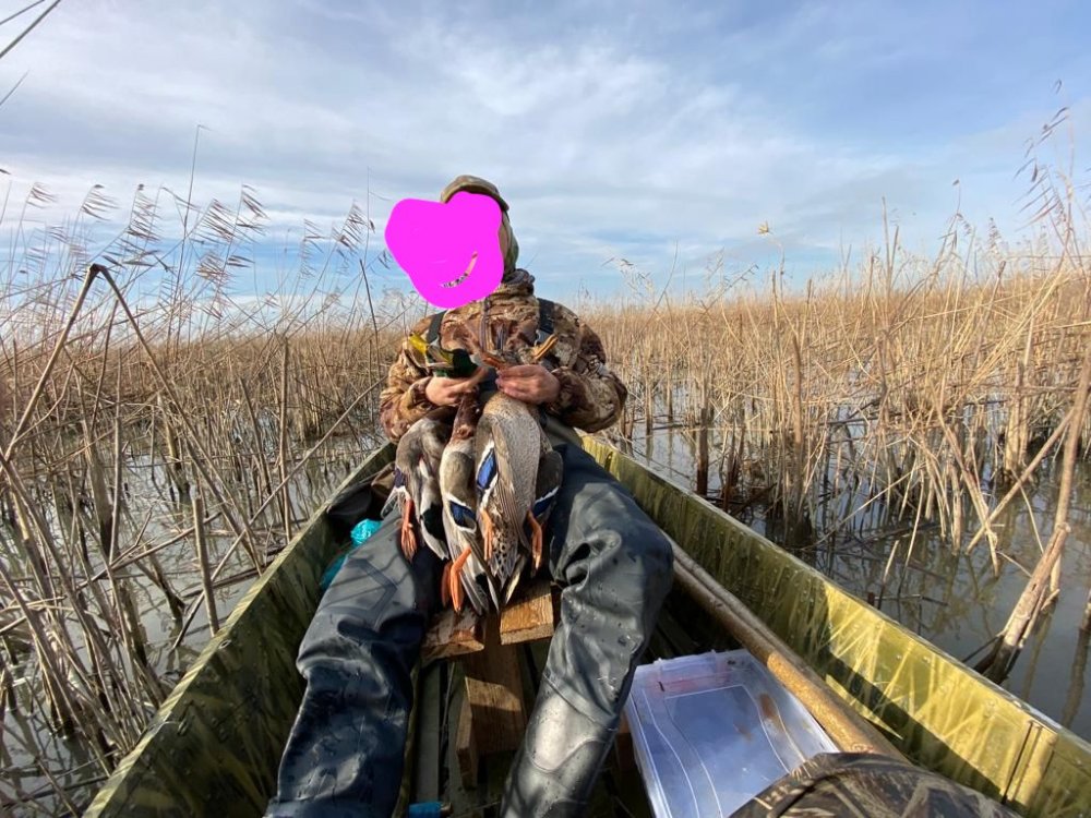 Если вода выше, не растет, стоит местами тростник до 2,5 м высотой, порой сплошником, и казалось бы непроходимым, но после того, как тростник в ноябре поменял цвет на песочный, попробовал в эту гущу сунутся на моторе, 6 ка тохатсу 4 ех такт, лодка металл, алюминий, 3,6 м. Скорости конечно нет, да она и не нужна, мотор лапой порой тянет за собой ломанный тростник, но это по большому счету не помеха, лодка уверенно ползет. Травы которая наматывалась бы на винт-нет. Порой вода поднимается до 1,2-1, 5 м , тогда вообще легко, но прятаться хуже. Но дело не в маскировке.