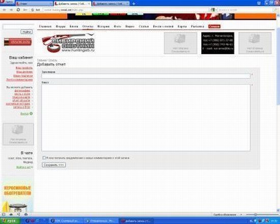Всем здорова! Долгое время отсутствовал на вашем сайте из-за ряда причин. В последнее время скопился материал с выездов..хотелось бы оформить отчеты, но столкнулся с проблемой-как в текст вставлять фотки? Может кто поможет..заранее благодарен.