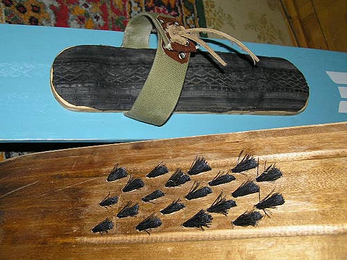 Мне ребята севера притаранили несколько пластин оленьего камуса. Полностью лыжи подбить не хватит конечно, но по паре полосок на лыжу можно выкроить. Вопрос к знатокам, как крепить камус к лыжам - на клей или можно степлером приколхозить? :-\