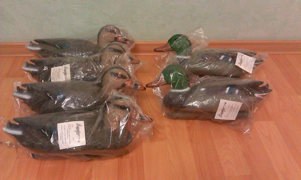 1200 комплект. 2 селезня и 4 утки. В магазине рыболовном, в соседнем доме от меня. С осени там лежали, ходил всё смотрел на них, а тут вот думаю, что это я без чучалок то охочусь:D, форум почитал, а тут все с чучелами. Полазил по сайтам, чёт дороговато всё, а тут вроде нормально. Вообщем решил взять, весной посмотрим как они себя покажут.