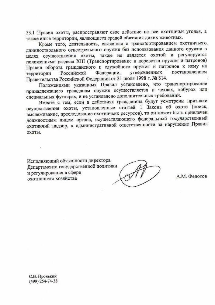 В этом году появилось ещё одно письмо МПР, разъясняющее, что транспортировка охотой не является. Выкладываю.... Только повторюсь ещё раз, таких было уже несколько , но в абсолютном большинстве случаев и госинспектора, и суды их игнорируют без всяких последствий для себя. Блог по этому поводу вот здесь https://www.hunting.ru/blogs/view/111288/