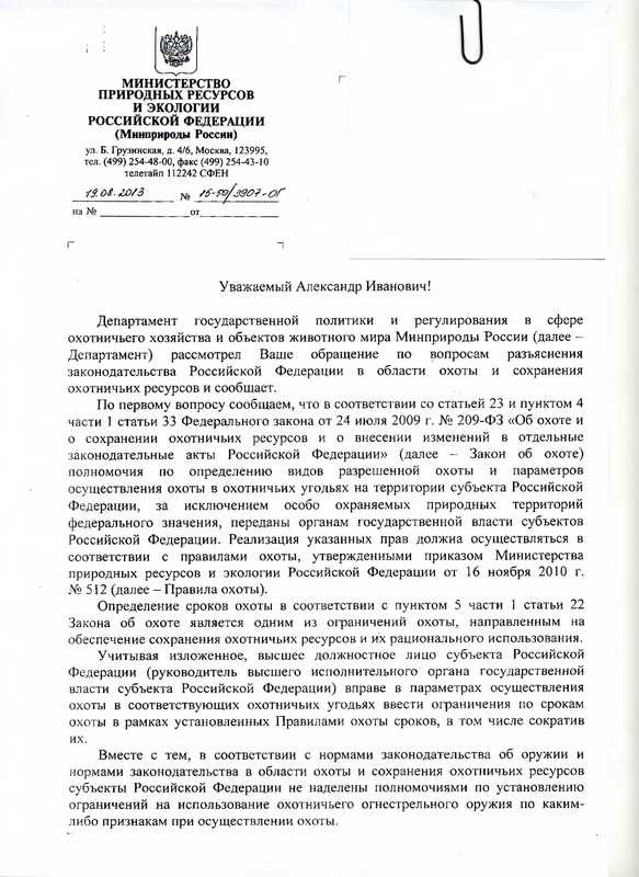 я из этого письма понял так что у нас в Бурятии и 7,62*39 калибр не законно на медведя запретили , только как быть , через суд отменять , денег нет на споры в суде , может кто найдется подаст протест :)