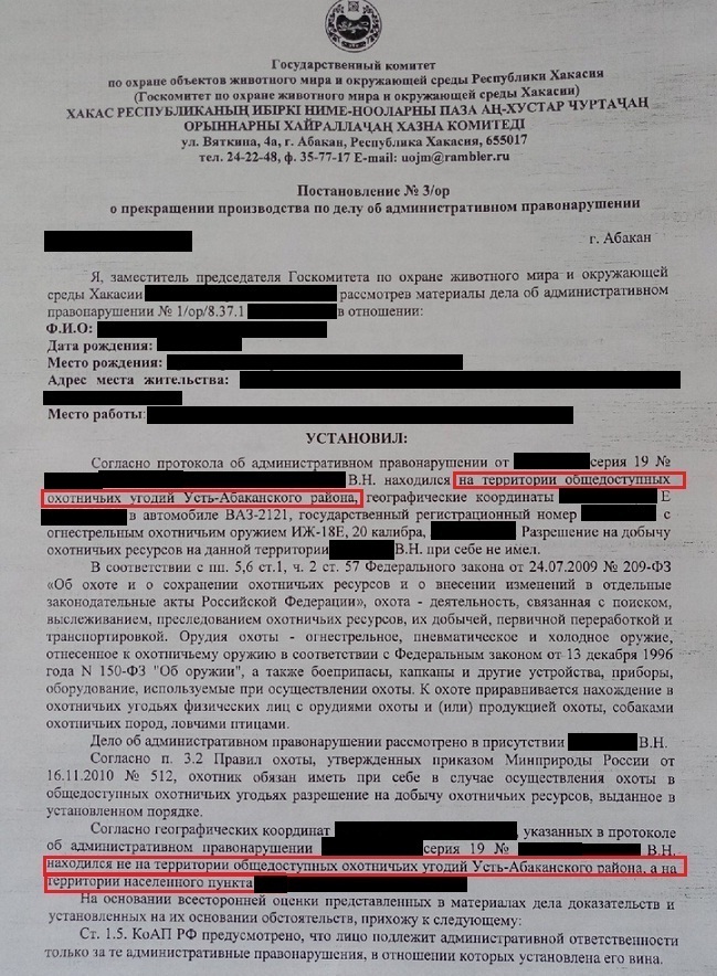 Спасибо что выложил. Очень полезная инфа для всех охотников. Пора уже ликбез на форуме проводить по правильности заполнения протоколов, и порядке их обжалования. Если есть возможность, может выложишь тоже копию протокола, чтоб знать как и что там должно быть заполнено. А-то подписывают не глядя, не читая. Этим и пользуются госы.