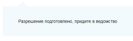 пришло сообщение: госпошлина оплачена, разрешение подготовлено.