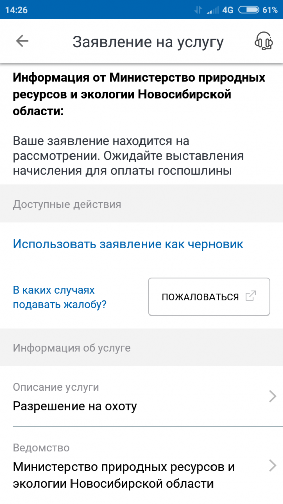 квитанция на сайте департамента "Сбор за пользование объектами животного мира"