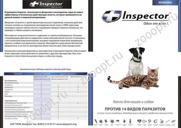 Инспектор я им постоянно пользуюсь 6-8 собак с весны и по осень в нагонке, ни одного клеща за этот сезон с собак не снял а также ни блох, ни глистов. ВЕШЬ!