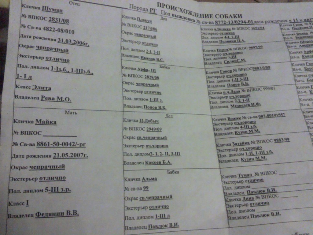 Только он держит собаку линии Павлюка, о котором я вам и говорил чуть выше, и щенки которого (Павлюка) прилетели летом в Кемерово. Зрите в корень(в родословную) там все написАно. А то что он катался на Юкренйн, так честь ему и хвала, у нас тоже кто-то туда катался, после того как Рева у нас, в России, Шумана выкупил. Не получились голоса...бывает...производственный брак..увы...всяк бывает...не стрелять же..вот и задарил. а вот новый хозяин уже имеет планы... Диплом то эт норально...а вот вязка с местным чемпионом...выжловку, да с "пятерошным" голосом... вот я и говорю....процитирую себя любимого вот кроме вязок и продажи щенков голова о чем думает? Да и крен с вами-всеми, "мичуринцы млять"...вяжи что хотите кого хотите и как хотите, потом не плачьте только. Как только попадет собакен с документами в руки...ВСЁ!..погнали! вяжем вяжем вяжем. Для меня, на самом деле, это уже малоипущий фактор, мне работы, с тем что есть, уже на всю жизнь оставшуюся хватит, а вот если получится еще пору собакенов выкупить, которых наметил...так ваще...просто счастлив буду