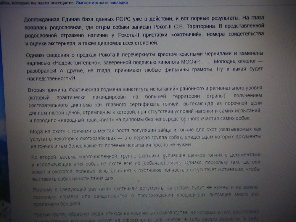 Случайно нашёл смелое высказывание , анализ состояния породы Русская гончая. Почитал. А ведь и с Русской-Пегой гончей всё тоже самое творится. Читай народ , делай выводы.