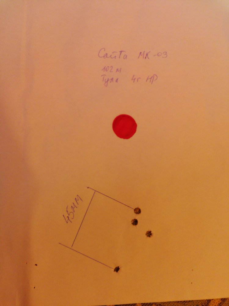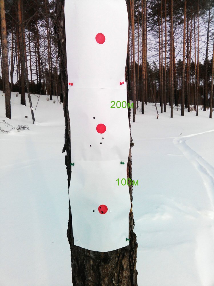 Всем привет. Да, это Сайга моя. Прицел Никко Стирлинг Димонд 4-14*50, временно снял с ПСП, и поставил на сайгу для вдумчивого отстрела новых партий патриков. Дистанция 101м, стрелял со стола, с мешка. Выложил разумеется лучшие кучи, всреднем было 4-5см. Барнаул редко летит лучше 10см, видимо в этот раз так звёзды сошлись. Вообще сайги могут кучно стрелять, но не всегда. Вроде подобрал патрон, который уверенно летит в 5см, а через неделю стреляешь в другую погоду и в другом месте и куча расползается до 6-7-8см. Не могу с этим разобраться ни как. И ещё большую роль играет нагрев ствола. Хорошо идут 2-3 выстрел, а с 4го уже начинаются отрывы. Первый тоже иногда даёт отрывы.