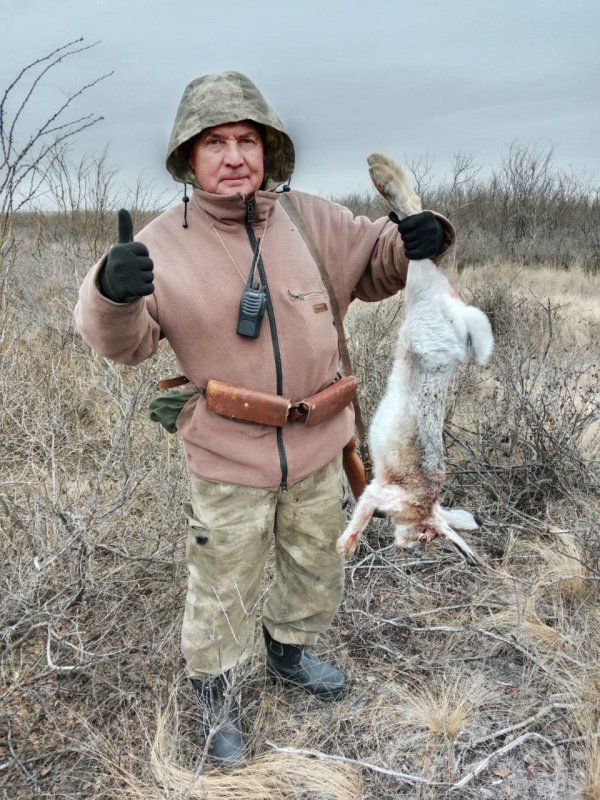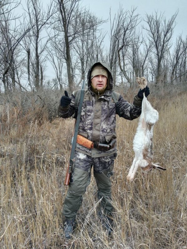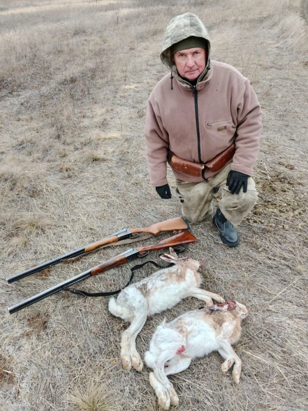 Первый косой поднялся далековато и я стрелял на пределе, когда белое пятно перемахивало через траву. Юра ловит направление уходящего косого и говорит, что шел тот замедленно и перешел на его, левый край. Стрелял я заводской двойкой, в черной полимеровской гильзе, 1998 года. Уверен в этих патронах, в заначке, от которой осталось полтора десятка. Началась потеха... Я выхожу из полосы и иду по ходу движения косого, Юра идет как и прежде. Метров через двести перелинявший косой выскакивает далеконько от меня. В правом стволе самокрут тройка, в левом таже двойка. Дуплечу - после второго выстрела левая задняя лапа косого закидывается и он ныряет в чащу. Кричу Юрику, который чуть впереди и не видит выхода косого...Юра стоит и ждет меня. Прохожу свою сторону и внимательно осматриваю каждый куст. Метров двадцать, максимум. Юра стоит наготове. Уверен, что косой лежит здесь и говорю об этом напарнику. Справляю малую нужду и собираюсь двигаться к Юрику. Тут же аккуратный выстрел и краткий доклад Юрика, что косой готов. С полем!