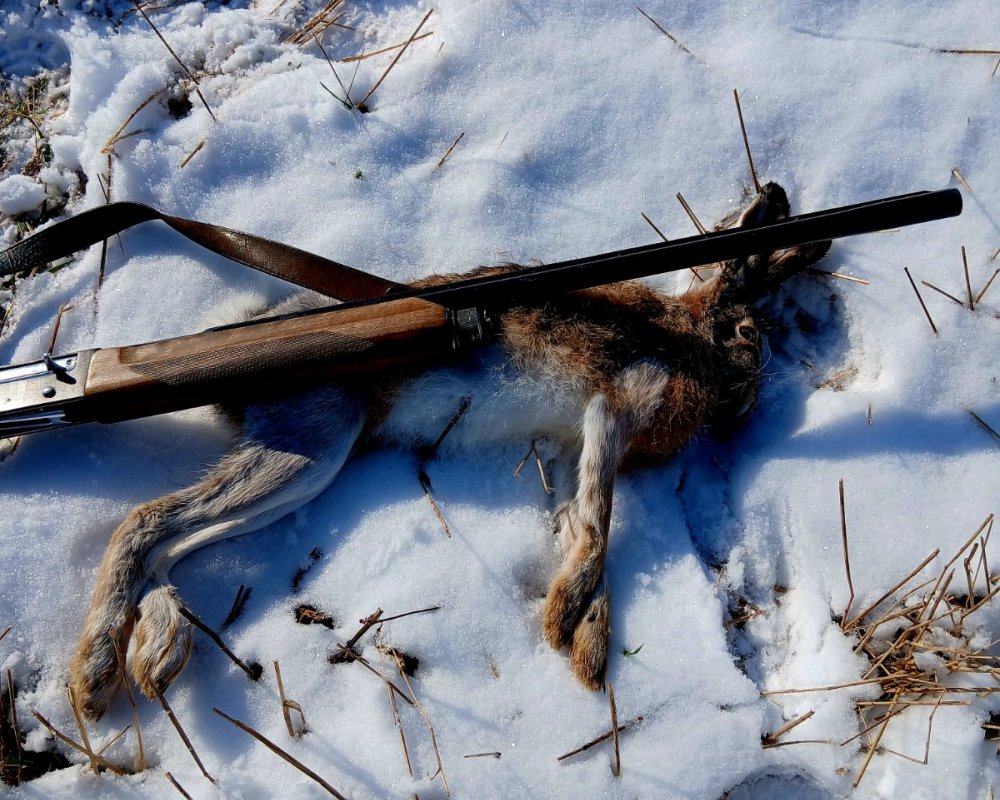 Сегодня пытались полями тропить русаков,снега совсем мало,скидывается в траву и найти следы не так то просто,пока ищешь он уже сбежал,4 подняли,на одной полянке в траве практически одновременно беляка и русака,но русака товарищу удалось добыть только после обеда,натоптались по полям от души,опять примерно 10 километров,но сегодня хотя бы погода шепчет))