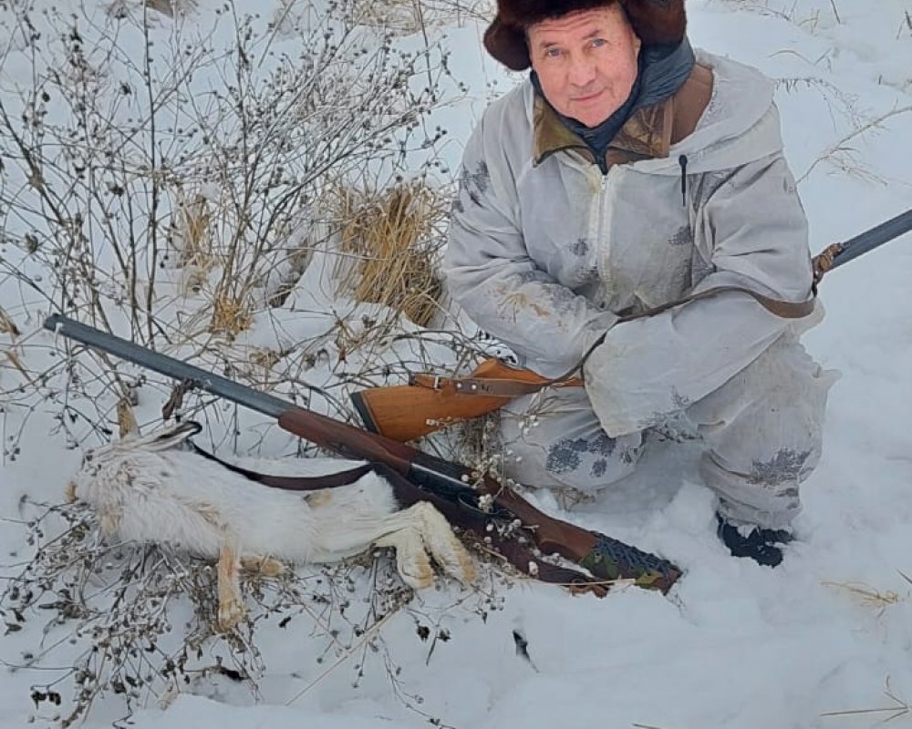 Снежку накидало. Выехали с охотником С., прибывшем из солнечного Атырау и вставшим на учёт в нашем областном обществе. Охота по сценарию, так называю я ситуацию. Для охотника всё новое, условия зимней охоты рознятся как небо и земля—в Атырау безснежье, у нас слава богу земля покрыта хорошим ковром. Косые не подвели. Только выгонять их из талов вдоль ручья, отходящего от небольшой плотины несколько затруднительно. Взяли одного и завершили пробный выезд до обеда. Дробь двойка, в патроне 1989 года. Один выстрел. Следы хорошо читались. Всем удачи на белой тропе!