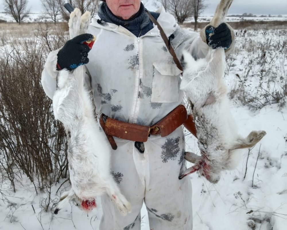 Выехали с Юрой, с началом дня. Мороз за ночь сильно сдал. По прогнозу метель. Лёгких путей не ищем. Пока не метёт доезжаем до места и пошли, пошли... Вдвоём этот маршрут чесать сложновато, но берём слаженностью и порядком движений))) Косой, предназначенный к новогоднему столу младшей дочери вылетел от речки и уже красиво уходил за тал, когда стреляя на пределе, я только чутьём уловил что выстрелил удачно... Двойка, патрона Рекорд, 1989 года, прошила ветки и вошла в затылок матерого косого, который стал третьим в весовой линейке этого сезона—5085, как оказалось позже. На втором участке прохода повалил снег —следовало выбираться. Попили чай, с выбором—килька, сардина. Сардина взяла вверх, поскольку мы уже умно взяли косого. Выбираемся ближе к дому. Ветер, метель. Ставим машину и расходимся—время в обрез. Своего второго косого вычисляю в кустах чилиги. Стреляю по силуэту, в кусте, уловив движение на выход. Патрон из той же серии—двойка, Рекорд, на славном Соколе, 1989 год. Вижу спину уходящего косого —иду по следу. Вот и капля крови, еще метров 50 и сход с тропы, на чужой след. Еще метров двадцать ещё сход. Вижу косого и добираю без выстрела. Теперь поспешаю к машине. Юра также возвращается. Разделываем косых во дворе, в хлопьях снега, летящих по ветру. Сегодня неплохая охота, о чём и вестуем. Всем Новогоднего настроения и всех жизненных благ!