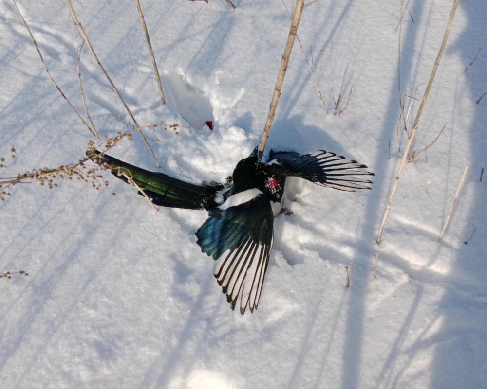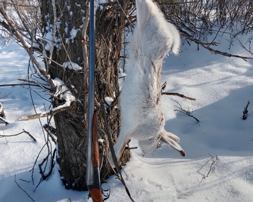 Сегодня решил поехать на речку, погонять косых . Погода стояла как на заказ, солнце и мороз -10. Два прошедших дня шёл снег, значит сегодня будет свежий след. Нашёл первый след, практически сразу поднял косого, но промазал. Второго зайца поднял не далеко от первого. Этого добыл. Стрелял "1".По пути пребрал сороку. Вот так прошла сегодня моя охота. Всех с наступающим!